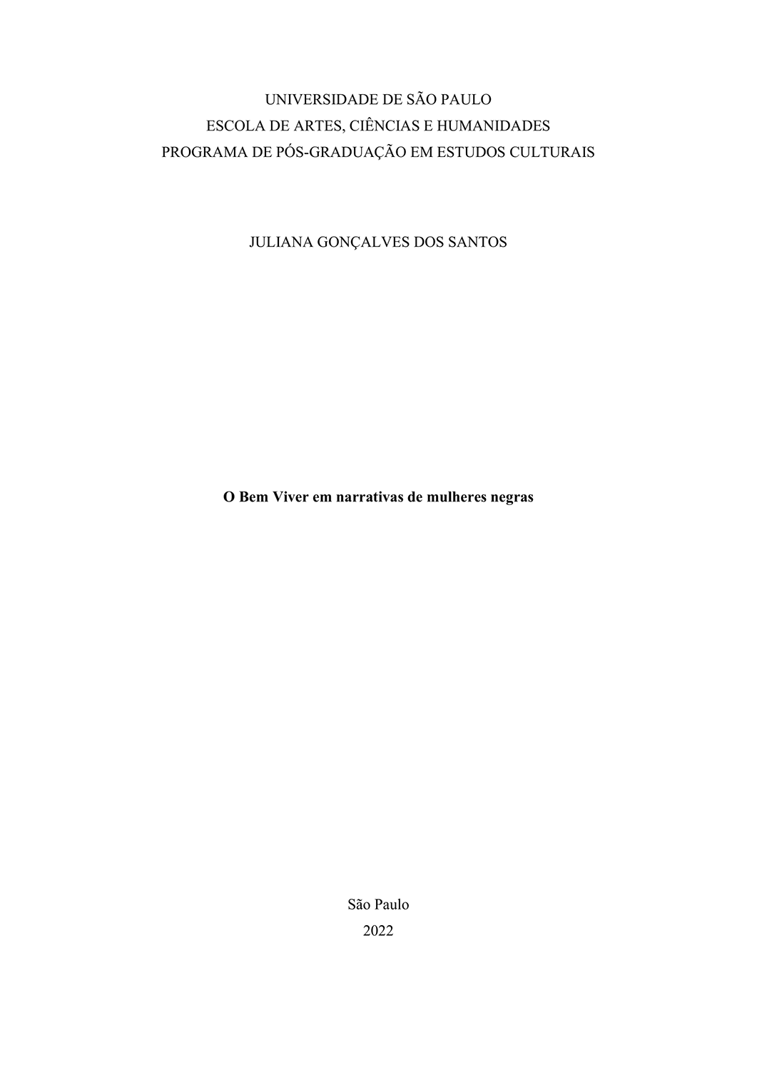 Santos, Juliana Gonçalves dos. O Bem Viver em narrativas de mulheres negras. 2022. Dissertação (Mestrado) – Universidade de São Paulo, São Paulo, 2022.